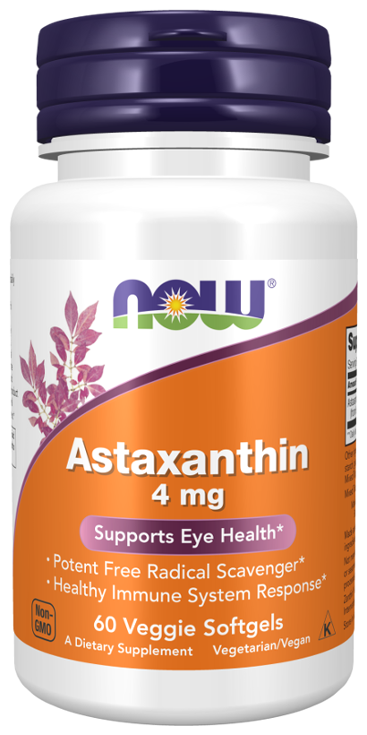 Астаксантин - это природный каротиноид, который благодаря своей уникальной структуре играет важную роль в защите клеток от свободных радикалов и здоровых реакциях иммунной системы.Now Астаксантин получен из микроводорослей Haematococcus pluvialis, не содержащих ГМО.