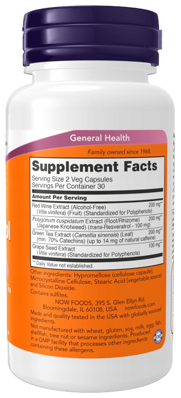 Natural Resveratrol – это общеукрепляющий комплекс, состоящий из экстрактов винного винограда и рейнутрии японской. Он обладает огромной биологической ценностью. Каждая капсула содержит по 200 мг ресвератрола, что сравнимо с 10 бокалами вина или сопоставимым количеством винограда. Добавка действует с первой капсулы, а ее эффективность увеличивается по мере прохождения курса.
