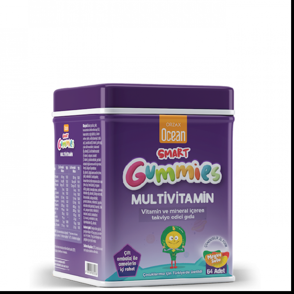 Пищевая добавка Ocean Smart Gummies выпускается в форме желеек с мультифруктовым вкусом. Для этого в состав добавлены натуральные ароматизаторы апельсина, лимона, яблока и клубники. В упаковке предусмотрено 64 желейные таблетки. В каждой из них содержится 9 витаминов, 3 минерала и инозитол: