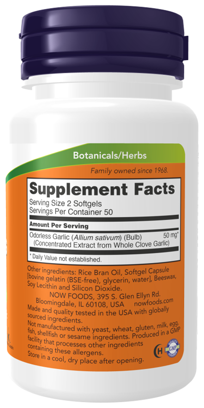 Чеснок без запаха Now получен из Allium sativum. Этот экстракт чеснока без запаха выдерживается в течение 18 месяцев, имеет высокую степень очистки и дезодорирован при сохранении питательной ценности чеснока. Чеснок содержит в большом количестве соединения серы, аминокислоты и микроэлементы.