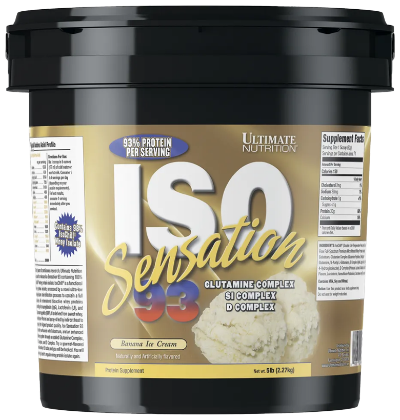 Ultimate Nutrition Iso Sensation - это 100% IsoChill изолят сывороточного протеина, полученный методом микрофильтрации при ультранизкой температуре. Этот продукт содержит неденатурированные биоактивные протеины, иммунноглобулин, лактоферрин и гликомакропептиды, а также коллоидное молозиво, которое помогает восстановить иммунные факторы у взрослых.
