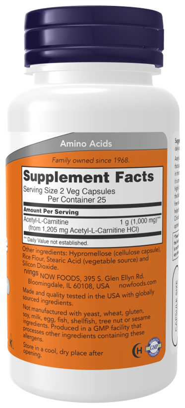 NOW Acetyl L-Carnitine 500 мг, 50 капс