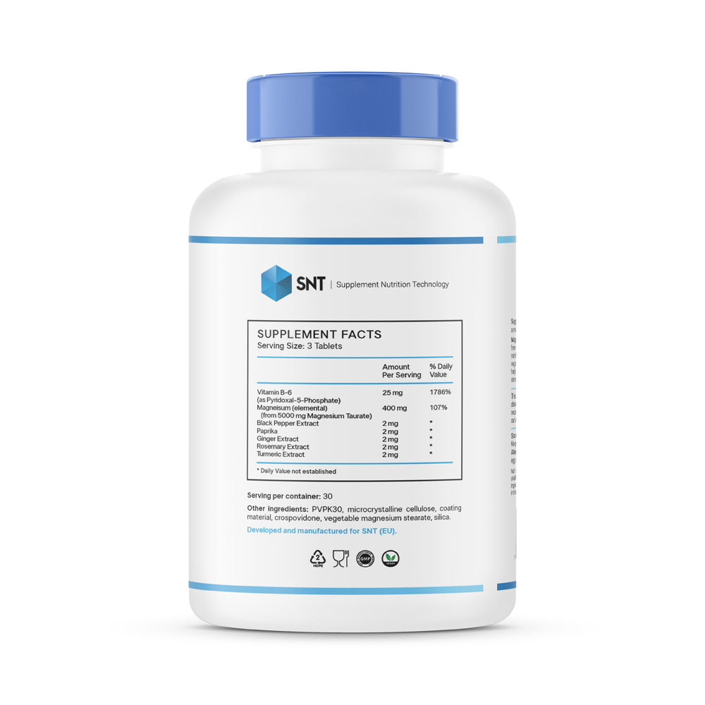 Таурат магния - хелатная форма магния и аминокислоты таурина. Вместе они являются отличными помощниками в снижении кровяного давления и оказывают пользу для сердца.Magnesium Taurate разработан с соблюдением всех стандартов качества. Добавка состоит не только из этих двух полезных компонентов,но и включает в себя другие важные витамины и микроэлементы, такие, как: витамин В-6, экстракт черного перца, паприка, корень имбиря, экстракт розмарина и куркумин, которые в комплексе положительно влияют на весь организм. Магний таурат обеспечивает защитные функции мозгу, сердцу, глазам и даже мышцам. Этот комплекс помогает предотвратить аритмию и образование тромбов.