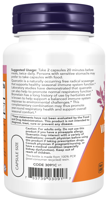 Quercetin with Bromelain - это насыщенный питательный комплекс. В его основе мощный биофлавоноид, полученный Софоры японской, и комплекс ферментов из стебля ананасов. Компоненты действуют в синергии и быстро метаболизируется в организме.