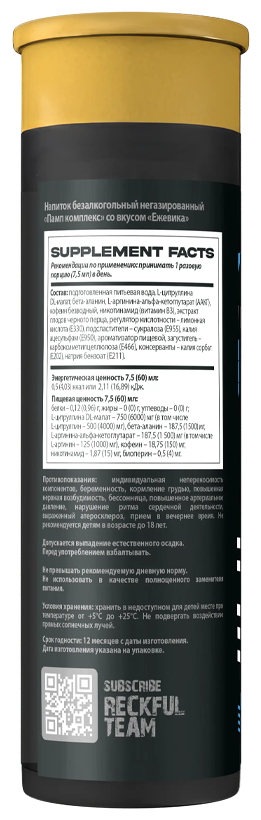 Reckful Pump Shot - это мощный предтренировочный комплекс, который заряжает энергией и помогает достичь максимальной продуктивности на тренировке. Удобный формат шота позволяет быстро выпить его перед занятием, а продуманный состав способствует увеличению выносливости, усилению пампинга и концентрации.