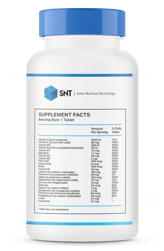 Данный комплекс витаминов и минералов позволяет поддерживать полноценные обменные процессы в организме, обеспечивая отличное состояние костной, нервной и иммунной системы, выработку энергии на клеточном уровне и поддержание хорошего самочувствия. Кроме этого, микронутриенты усиливают защиту и предотвращают развитие дегенеративных заболеваний.