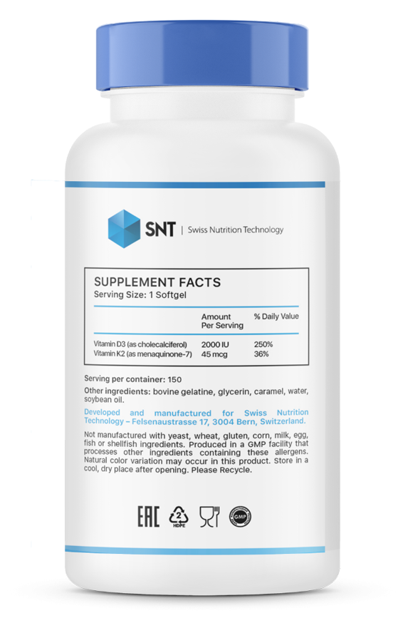 SNT Vitamin D3 + K2 2000 IU, 150 капсул