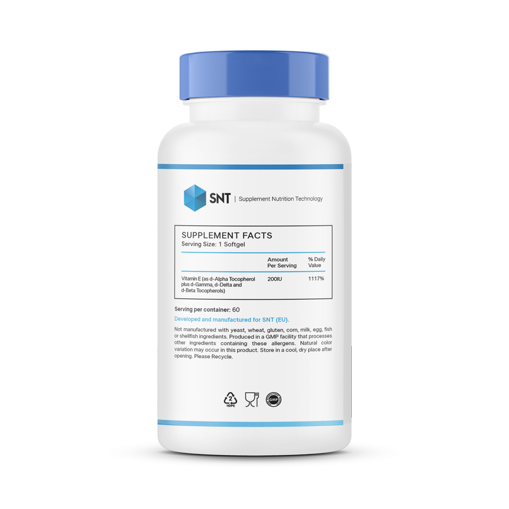 - Натуральный состав: Содержит d-альфа токоферол и смесь токоферолов (d-гамма, d-дельта, d-бета), что делает его эффективным и качественным источником витамина Е.