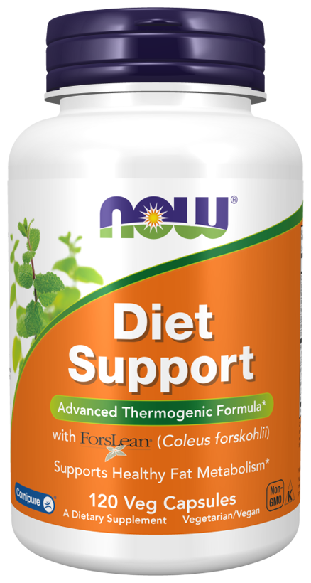 Now Diet Support содержит ForsLean, уникальный экстракт колеуса форскохлии, и Super Citrimax, уникальный экстракт-гидроксилимонной кислоты (ГКА), полученный из плодов гарцинии камбоджийской. Доказано, что каждый из этих ингредиентов способствует здоровому усвоению жира, особенно в сочетании со сбалансированной диетой и программой тренировок. L-Карнитин Carnipure, заменимая аминокислота, облегчает перенос жиров в митохондриальную мембрану для использования в выработке клеточной энергии. В дополнение к этой формуле, Now Diet Support включает необходимые питательные вещества и экстракт зеленого чая для поддержки метаболизма.